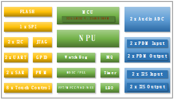 音旋風二代的CPU是頻率為196MHz的RISC-V架構,同時NPU更強,能夠支持浮點、低比特等更多運算方式;二代產品采用了QFN32-4x4/QFN48-6x6技術,封裝面積更?。淮龣C喚醒功耗亦大幅下降,僅10mW,是音旋風一代的十分之一。此外,音旋風二代產品還支持離在線一體化設計,支持WiFi/藍牙等接口。